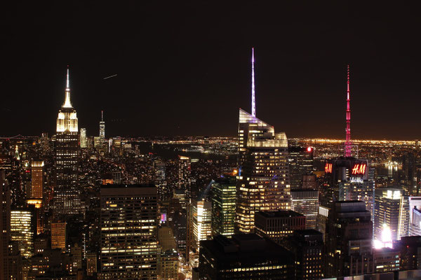 Schon tagsüber ist New York von oben eine Wucht. Die schieren Ausmaße des Central Parks werden einem erst hier bewusst und der Blick reicht bis an die Spitze Manhattans. Auch hier bietet das geordnete Gewirr von Wolkenkratzern, Kirchen und Wohnhäusern noch einmal ein spektakuläres Panorama. Noch besser wird es aber nachts. Wie ein Diamant glitzert die Stadt, die sich wie ein endloser Teppich aus Lichtern bis hinter den Horizont ergießt. Alles funkelt und vibriert. Der Lärm der Straßen ist nur noch mild zu hören. Sterne und Flugzeuge scheinen einen zu umschwirren.