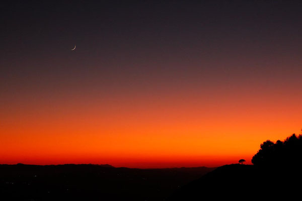 Dann wirft die Dämmerung ihre langen Schatten über das Land. Der Himmel färbt sich erst knallgelb, dann tiefrot und pink. Eine Explosion der Farben, die typisch für die kalifornische Westküste und dennoch einfach unfassbar für das Auge ist. Über den schwarzen Silhouetten afrikanisch aussehender Bäume erscheint weiß die zerbrechlich dünne Sichel des Mondes wie ein Schiff auf offener See. Das Hollywood Sign färbt sich erst orange, dann rosa und, als die Sonne untergegangen ist, silbrig. Los Angeles beginnt, wie ein Diamant zu flimmern. Ich setze meine Kopfhörer auf und schalte auf Lana Del Rey. Die kühle Abendluft legt sich auf meine geschundene Haut. Meine Beine sind rot vor Staub und Dreck. Doch ich bin hier. Über den Dächern Hollywoods. Wo der violette Abendhimmel über einer Metropole aus zerrissenen Träumen und großen Möglichkeiten liegt.
