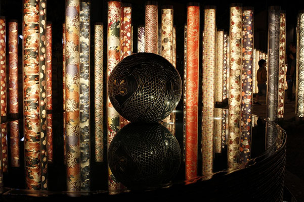 Forest". In jede Säule ist eine lange Stoffbahn mit Blumen- oder Drachenmuster gewickelt.