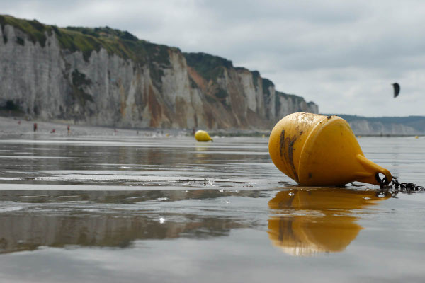 We are throwing our stuff in the suitcases and the suitcases in our car. We’re traveling on again. To the seaside. To Étretat. The hot air gets cooler and still nobody damaged our car. It could be worse! By driving over a hilltop in Dieppe I can see the turquoise water reaching to the horizon. I am as excited as a kid. As usual when I get close to the coast. Waves, seagulls, beaches, love. Étretat is a small seaside resort with round about 1,400 inhabitants. It looks like a Frisian village in Germany with small restaurants, bricks, flowers and fishermen. But the idyll is surmounted by the massive chalk cliffs that line a large part of the Normandy coast. In Étretat, however, they are especially beautiful – because erosion has milled three fabulous arches into the white rocks. Green waves are crashing against the 230 feet tall cliffs. I’m pulling the salty air deep in my lungs while pebbles are crunching under my feet. We are hiking the rocks for a whole day and our faces get burned unnoticed under the strong winds and the hot sun.