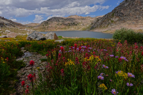 And that's precisely why I'm not going to say where exactly it is. Only a few locals come here occasionally to climb and fish. It's wild wilderness outside of national parks, campgrounds, and civilization. Public land that is available to everyone, similar to the "Allemannsretten" in Norway. Leave nothing but footprints, take nothing but photos is the guiding principle, which is actually well repsected out here. In paradise. Where carpets of flowers bloom, turquoise lakes glisten, a few remnants of snow lurk, and you are completely on your own. Wild.